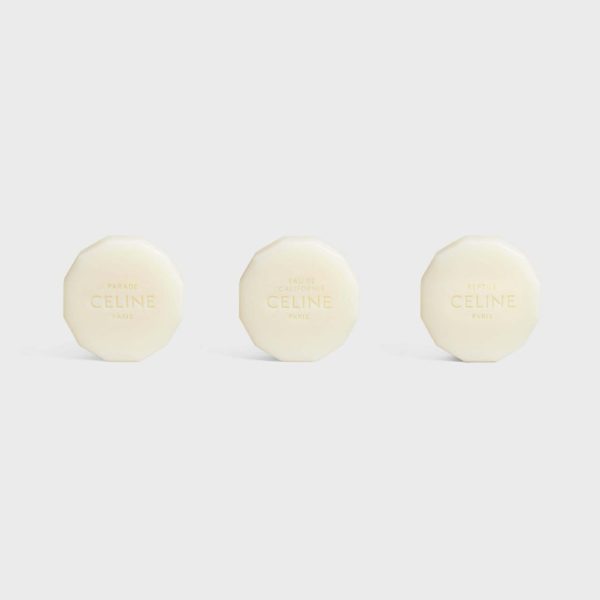 DIE SEIFEN VON CELINE BESTEHEN ZU 96 %* AUS NATÜRLICHEN INHALTSSTOFFEN UND SIND MIT SÜSSMANDELÖL UND PFLANZLICHEM GLYCERIN ANGEREICHERT.DIESE SEIFEN GEBEN DIE GERUCHSSIGNATUR DER DÜFTE PARADE, EAU DE CALIFORNIE UND REPTILE GETREU WIEDER.