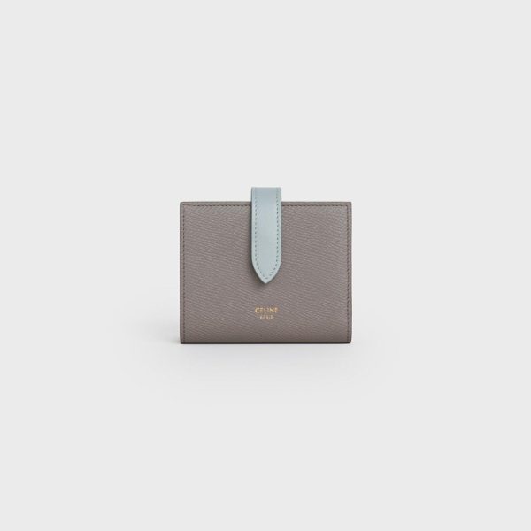 CELINE Brieftaschen | Damen Kleine Essentials Brieftasche Mit Riemen Aus Zweifarbigem Genarbtem Kalbsleder Kiesel/Mineral
