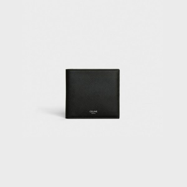 CELINE Brieftaschen | Herren Zweifach Gefaltete Brieftasche Aus Genarbtem Kalbsleder Schwarz