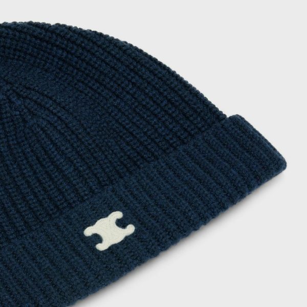 CELINE Hüte Und Weiche Accessoires | Damen Triomphe Matrosenkappe Aus Wollstoff Dunkles Marineblau