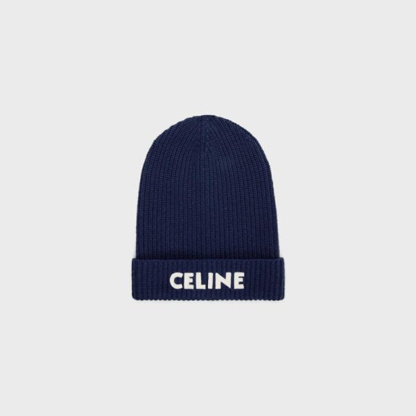 CELINE Hüte Und Weiche Accessoires | Herren MÜTZE AUS GERIPPTER WOLLE MIT CELINE-STICKEREI Schwarz