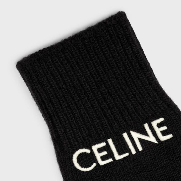 HANDSCHUHE AUS GERIPPTER WOLLE MIT CELINE-STICKEREI