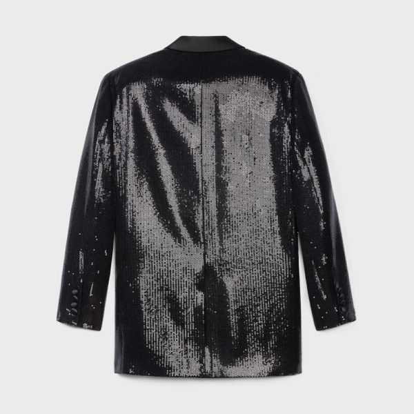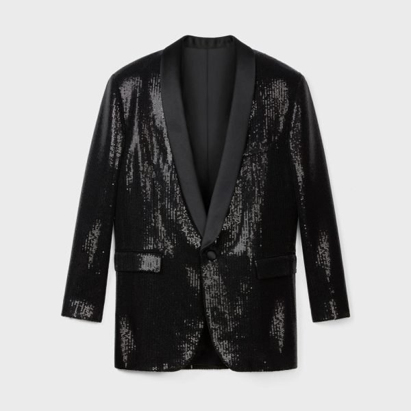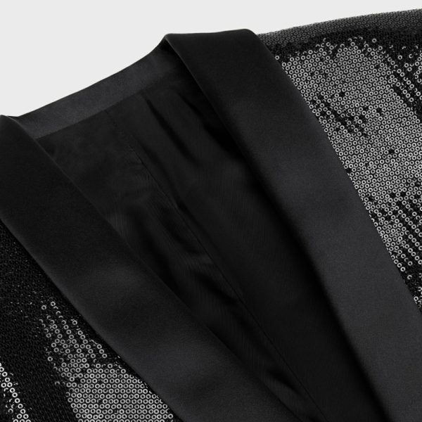 KIM-SMOKINGJACKE MIT SCHALKRAGEN UND 1 KNOPF AUS SABLÉ MIT MIKRO-PAILLETTEN