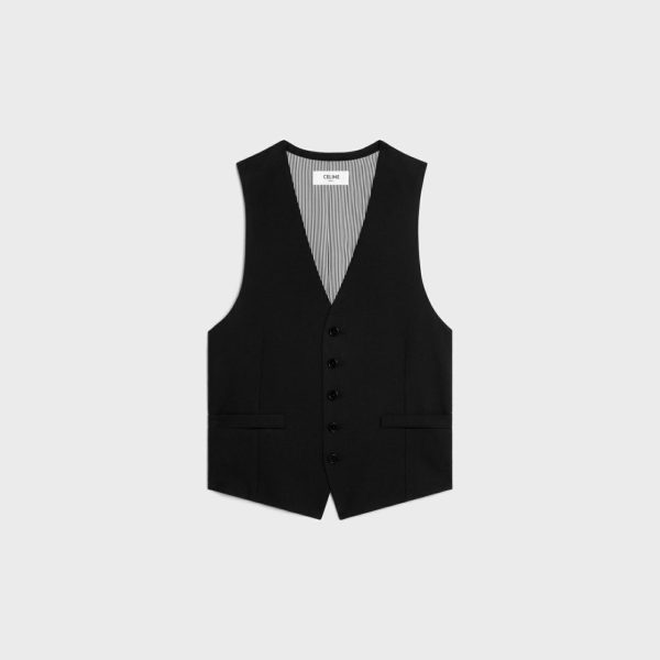 CELINE Jacken Und Hosen | Herren Weste Aus Wollgabardine Schwarz