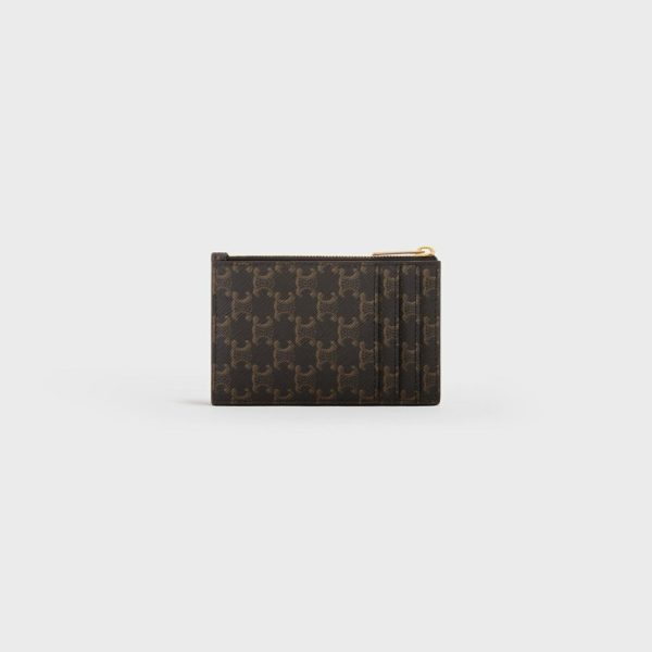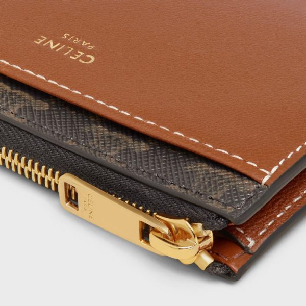 CELINE Kartenetuis | Damen Kartenetui Mit Reißverschluss Aus Triomphe-Canvas Und Lammleder Tan