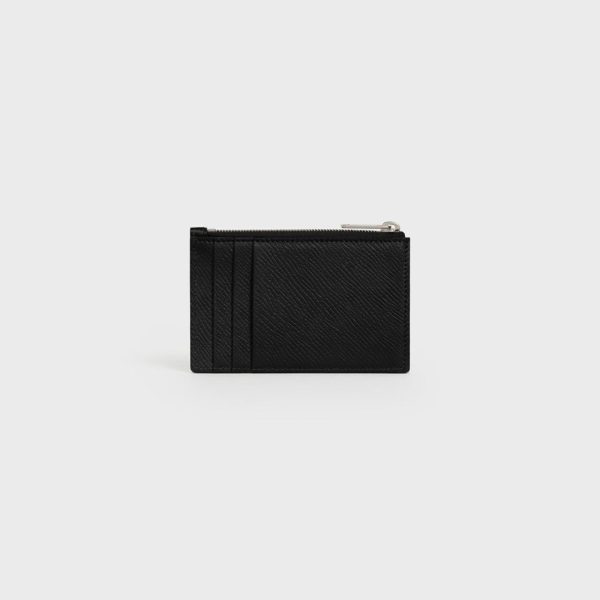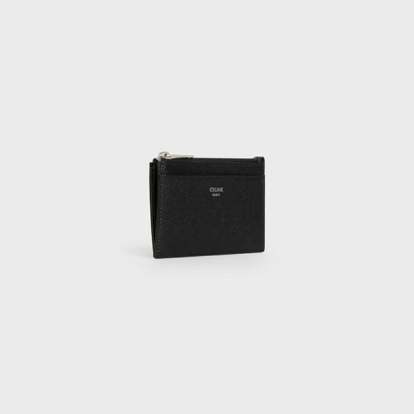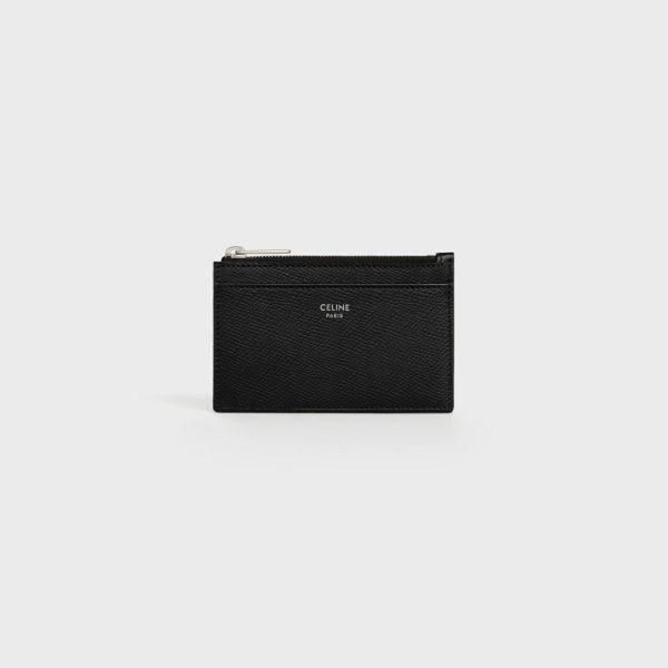 CELINE Kartenetuis | Herren Kartenetui Mit Reißverschluss Aus Genarbtem Kalbsleder Schwarz
