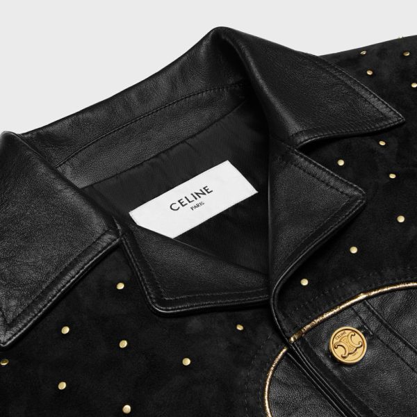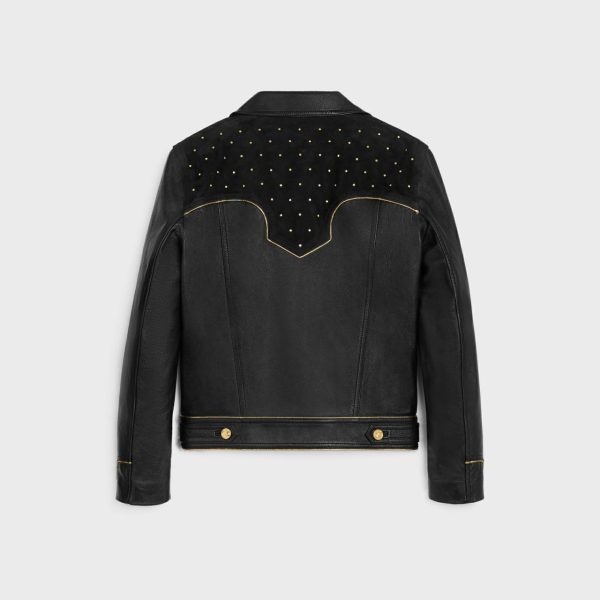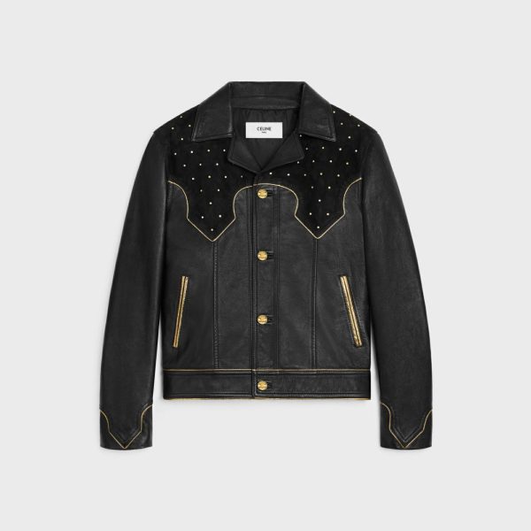 CELINE Leder | Herren Western Blousonjacke Mit Nieten Aus Weichem Lammleder Schwarz/Gold