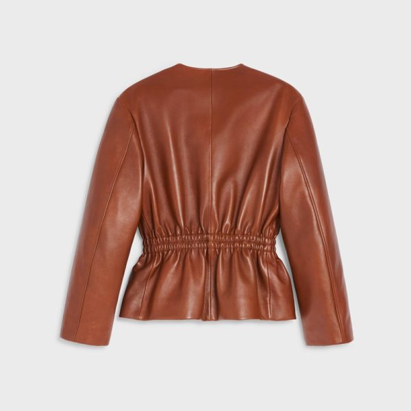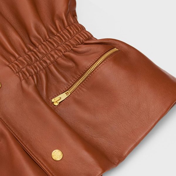 Gesmokte Bikerjacke mit Gürtel aus weichem pflanzlich gegerbtem Lammleder