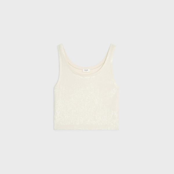 Gekürztes Tanktop mit Paillettenstickerei aus Seidenjersey