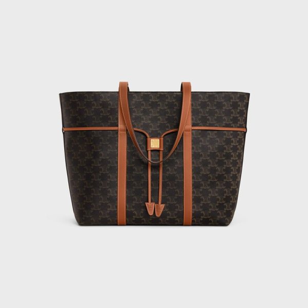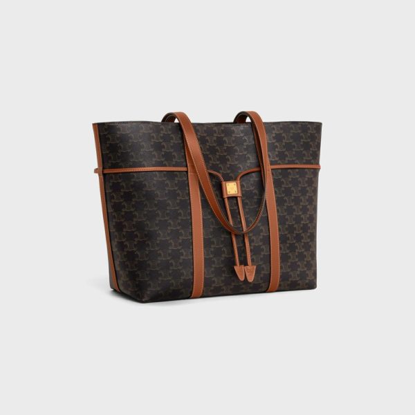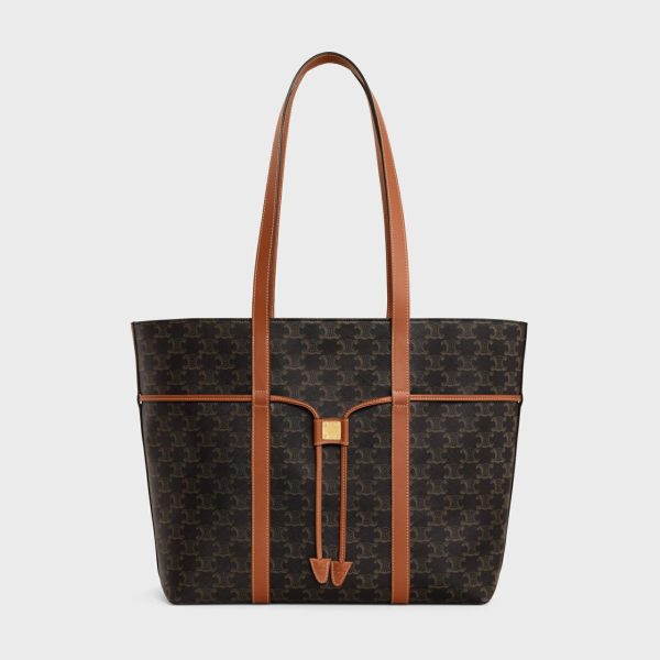 CELINE Shopper | Damen Cabas-Tasche Mit Kordelzug Aus Triomphe-Canvas Und Kalbsleder Tan