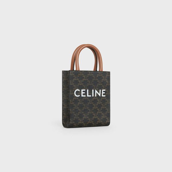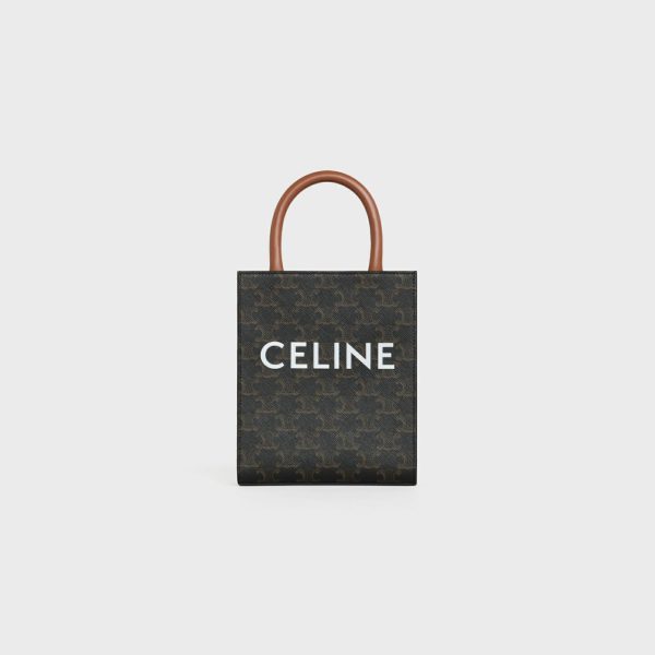 CELINE Shopper | Damen Vertikaler Mini-Shopper Aus Triomphe-Canvas Und Kalbsleder Mit Celine Aufdruck Tan