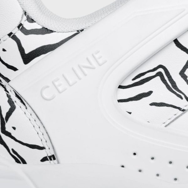 CELINE Sneaker | Herren CT- CELINE TRAINER NIEDRIGER SCHNÜR-SNEAKER Aus KALBSLEDER & KALBSLEDER MIT ZEBRA-PRÄGUNG Optisches Weiß/Schwarz
