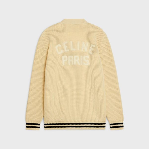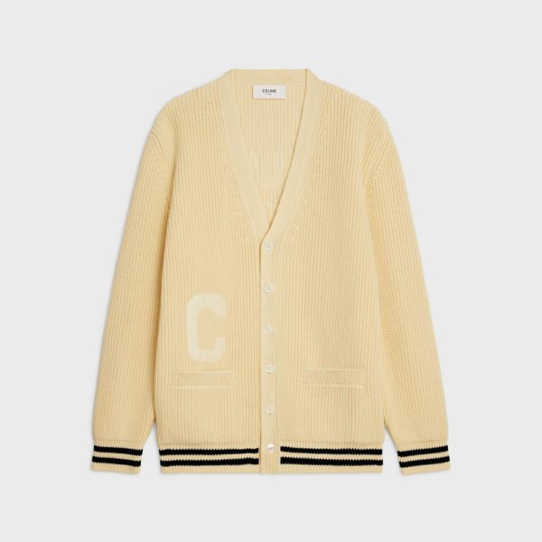 Lange Celine College-Strickjacke mit Aufnäher aus Baumwolle