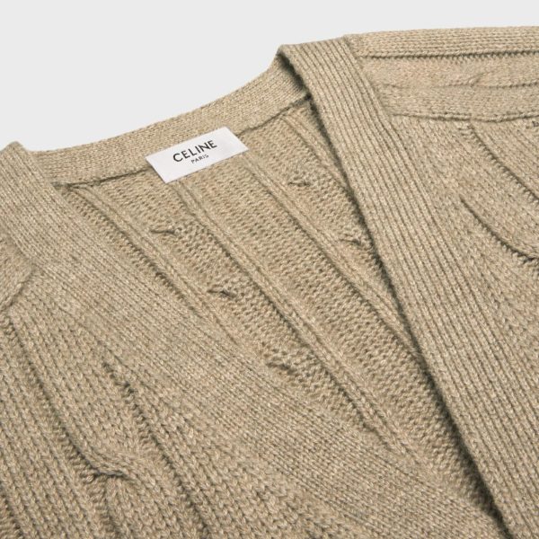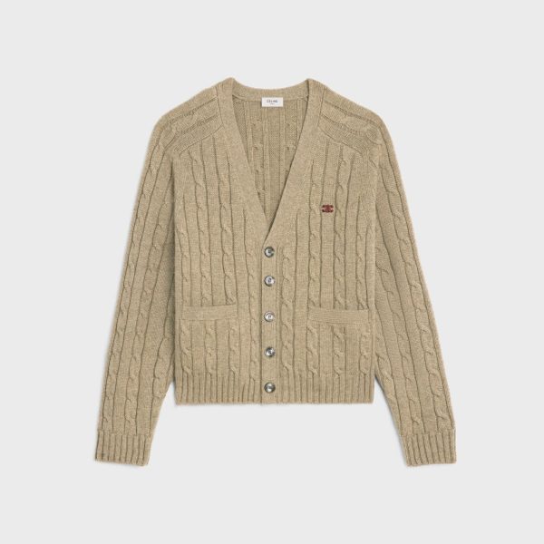 CELINE Strick Und Sweatshirts | Herren Triomphe Strickjacke Aus Kaschmir Mit Zopfmuster Helles Taupe