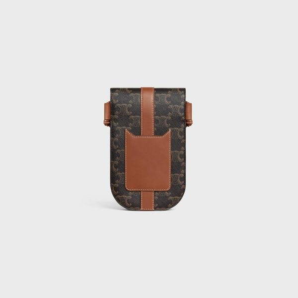 CELINE Triomphe-Canvas | Herren Telefonhülle Aus Triomphe Canvas Und Kalbsleder Tan